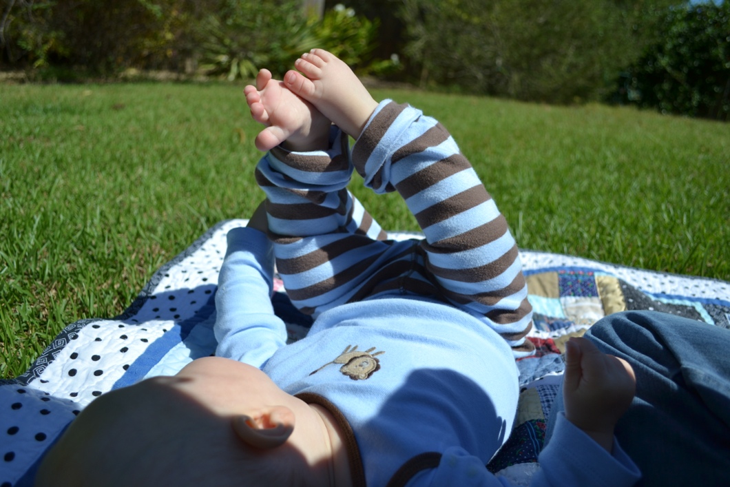 I tried to get a sweet picture of Hamilton and Collier. Hamilton fussed at first, then promptly dumped Collier over and out of his lap. Fortunately, the grass was plush and soft under the quilt.